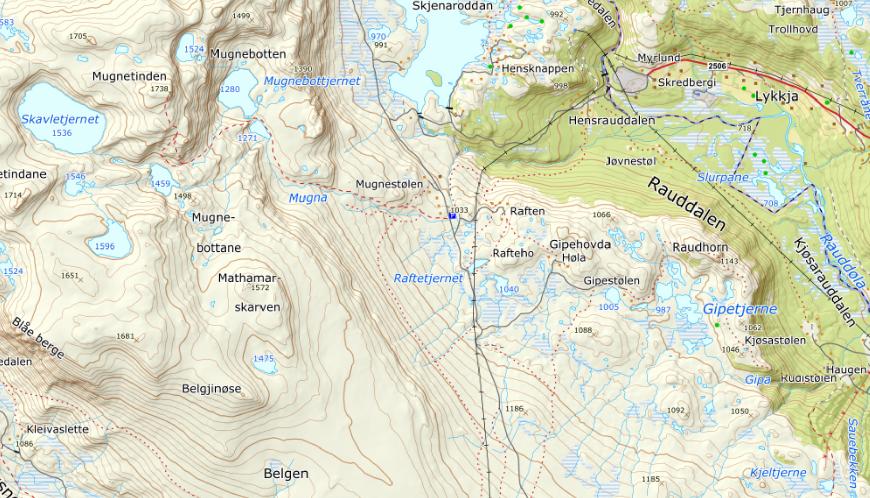 Har du sterk vind S-SV så kan du, om du er god og tilpasser kite/utstyr, og forholder deg til rasfare, loope opp skaret fra sør mot Mugnetinden. Altså vestligste rødstiplete markering i kartet, og videre opp.